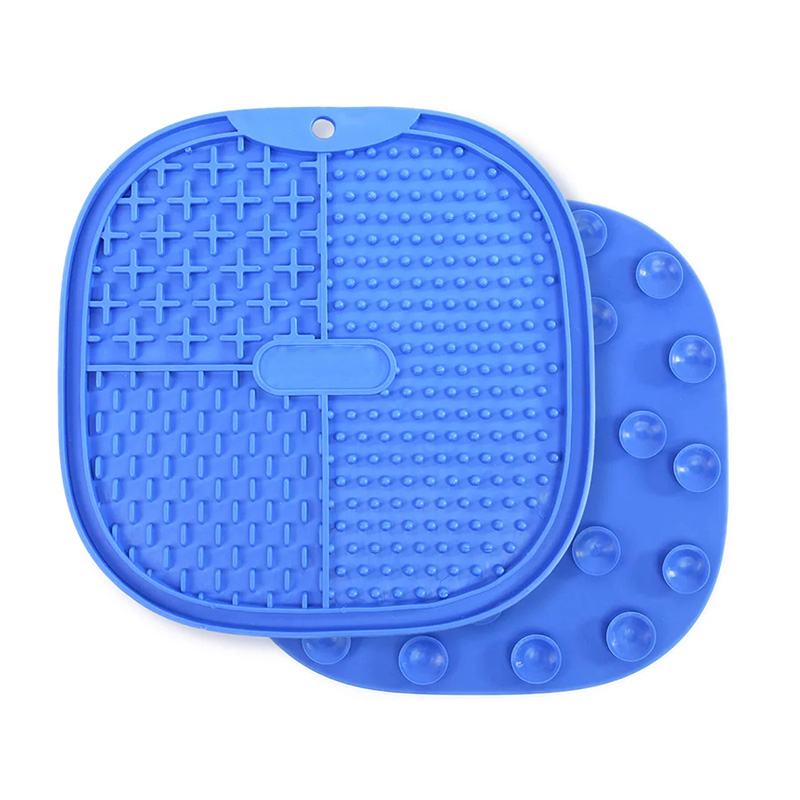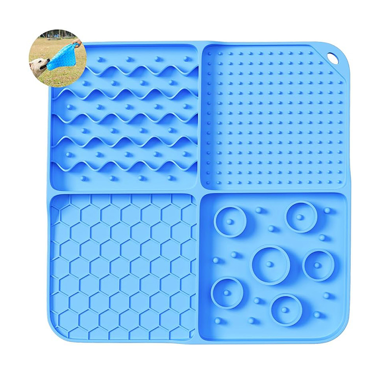 "El azul, personalizadoalfombrillas de lamer de silicona para perrosha sido un vendedor estable en la categoría de mascotas de Amazon. ¡El diseño de la copa de succión elimina el problema de las mascotas que derraman alimentos, y la tasa de revisión positiva es superior al 95%! "